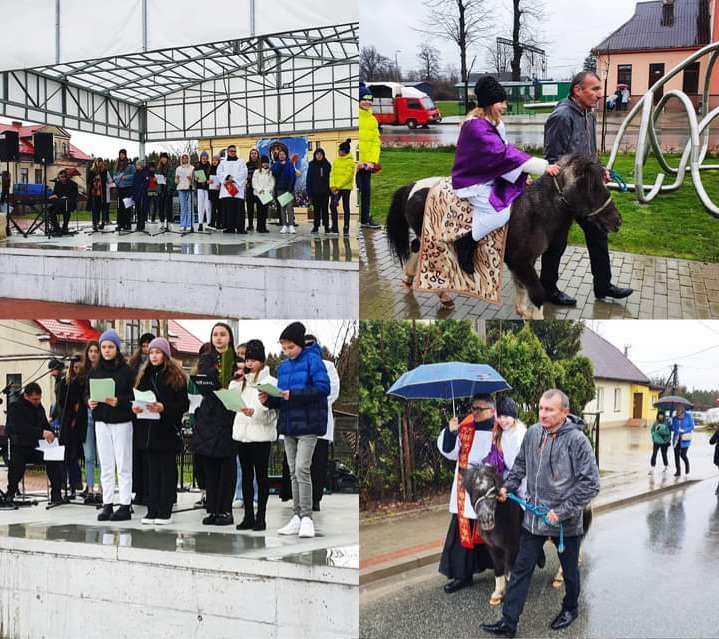 Osiołek – kucyk Kasia, początkowa spłoszona głośnymi dźwiękami muzyki, szczęśliwie przywiozła Pana Jezusa – dzielną Olę Karolczuk do Kościoła.