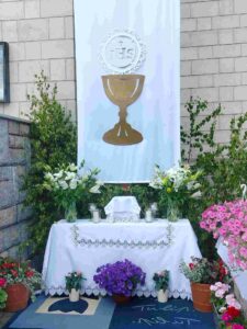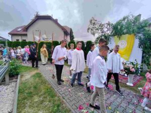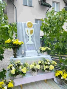 Post published:10/06/2023 Post category:Wydarzenia W czwartek Uroczystość Najświętszego Ciała i Krwi Pańskiej, czyli Boże Ciało. Po Mszy św. o godz. 1030, z naszego kościoła wyruszyła procesja eucharystyczna do czterech ołtarzy.