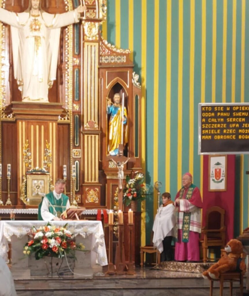 O godz. 9.00 została odprawiona Msza Święta, podczas której Ksiądz Biskup wygłosił Słowo Boże i udzielił błogosławieństwa wszystkim dzieciom.